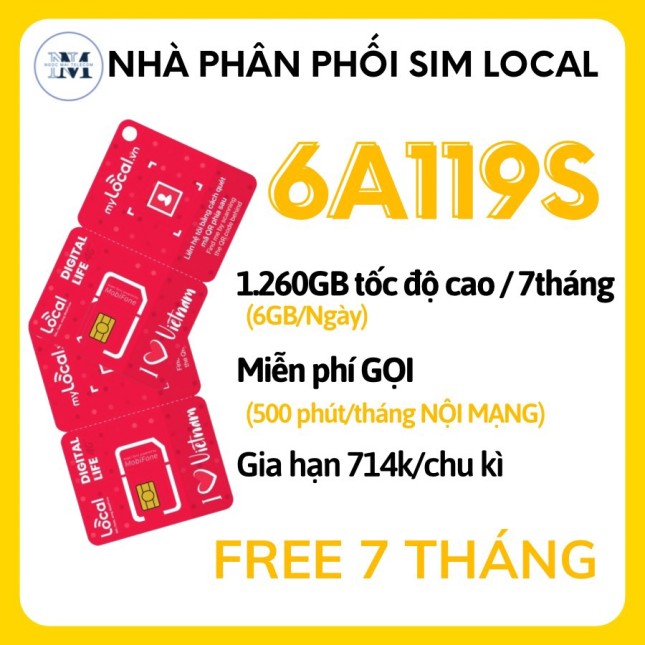 Sim Local Mobi A120 - 4GB/Ngày tốc độ cao - Miễn phí 1 tháng